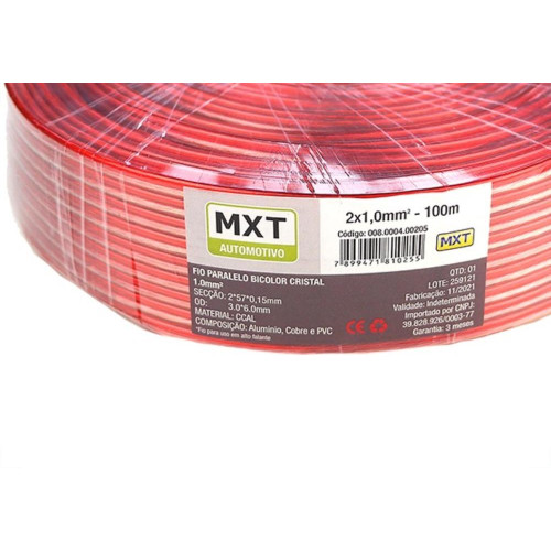 O Fio Bicolor Para Som MXT 2X1,00 é ideal para instalações de áudio de alta qualidade. Com dois condutores de 1,00 mm², este fio oferece excelente condução de sinal e durabilidade. Sua coloração bicolor facilita a identificação das polaridades, garantindo uma instalação mais prática e segura. Perfeito para sistemas de som automotivos e residenciais, o Fio Bicolor Para Som MXT é a escolha certa para quem busca performance e confiabilidade em suas conexões.