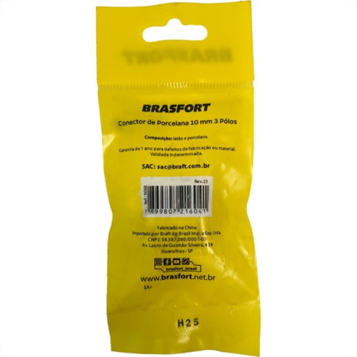 Cartela Conector Porcelana Brasfort 3 Polos 10Mm Com 1 Peca 9088