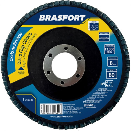 Disco Flap Brasfort 4.1/2 80G Conico Oxido Zirconia 9123 - Kit C/10