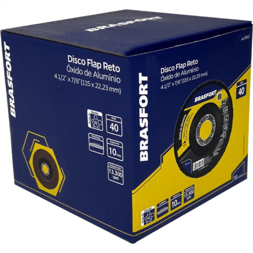 Disco Flap Brasfort 4.1/2'' 40G Reto Oxido Aluminio 9113 - Kit C/10