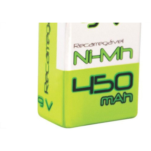 Etiquetas: Pilha Recarregável, Bateria 9V, 450mAh, Flexgold